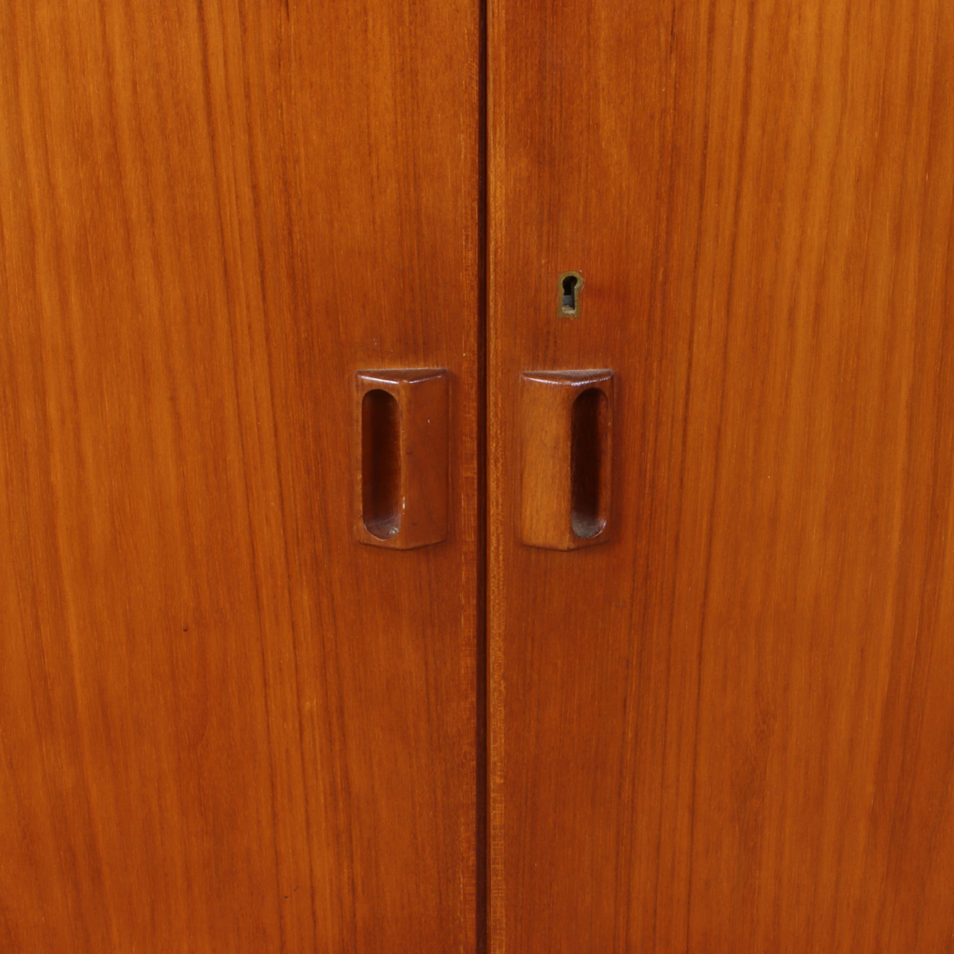 Lovely 1960s teak cabinet designed by Børge Mogensen for Søborg Møbler featuring sliding glass doors, adjustable shelves and locked bottom cabinet. Simple and beautiful design with the quality craftsmanship associated with mid century Danish furniture. Minor age appropriate wear. Nationwide shipping and local delivery available. Please contact with questions prior to purchase. All sales final.