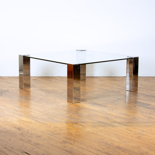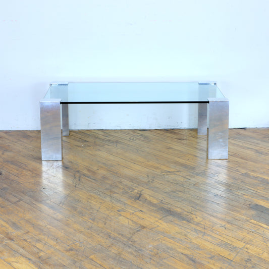 1970s Willy Rizzo Chrome and Glass Coffee Table for Cidue