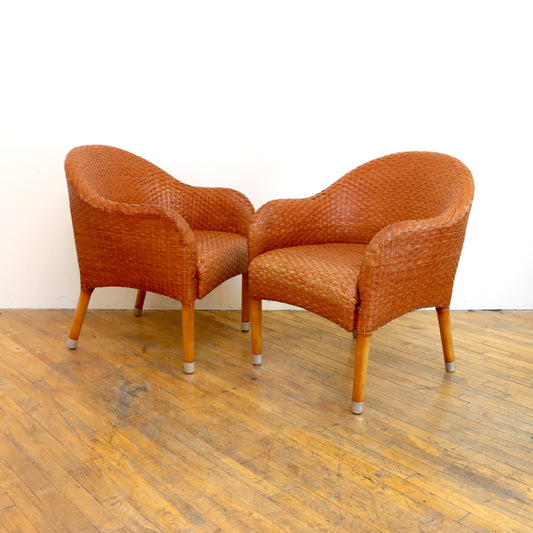 Pair of Antonio Citterio Style Woven Leather Lounge Chairs