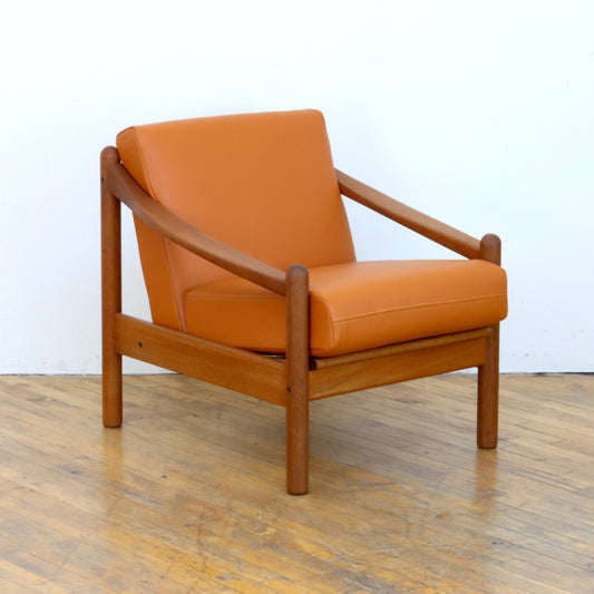 1970s Domino Møbler Teak and Leather Lounge Chair