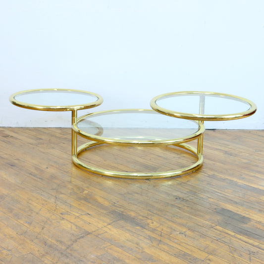 Vintage Three Tiered Swivel Coffee Table After Milo Baughman
