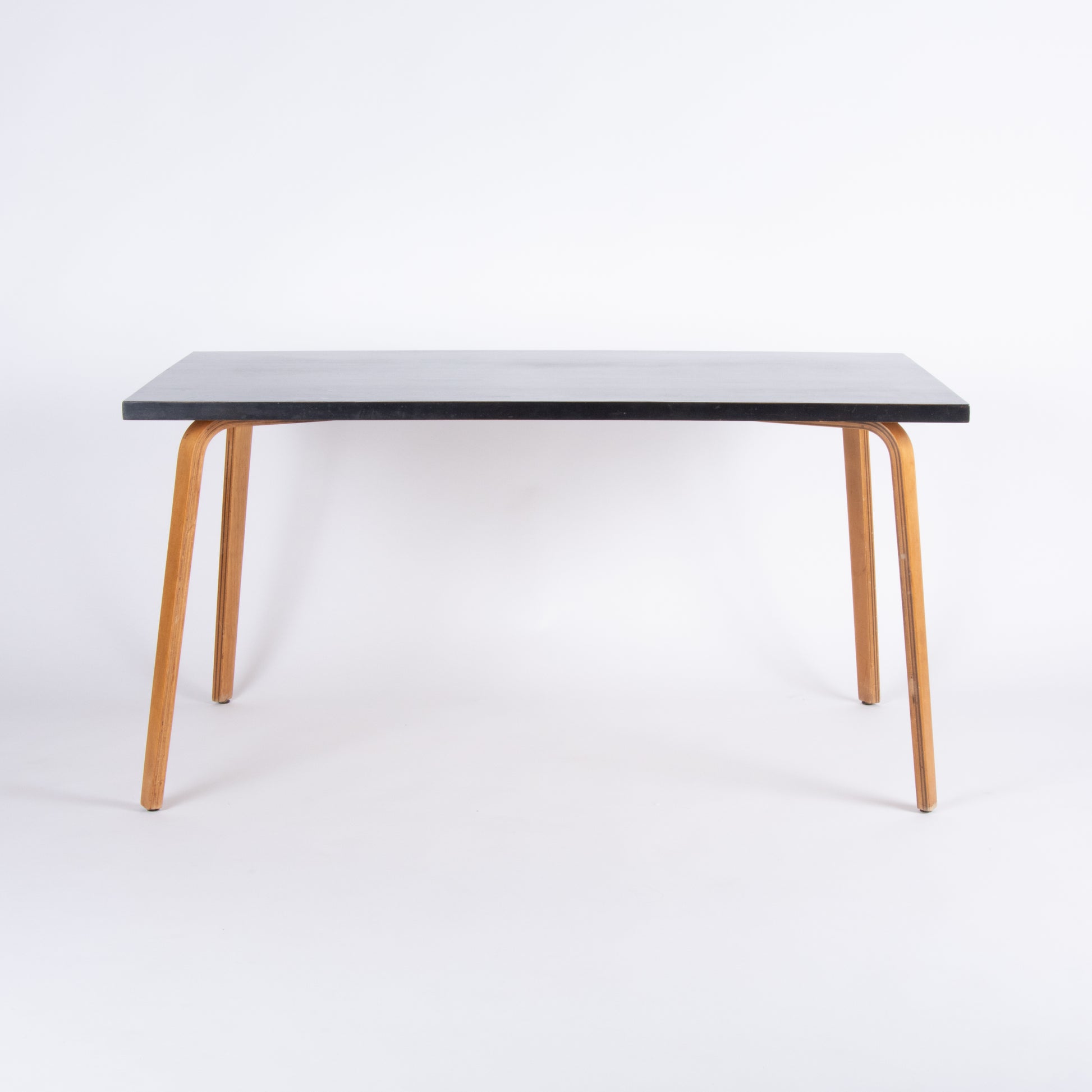 Classic and simple dining table manufactured by Thonet in the 1960s. Bent ply legs and a dark, almost black stained wood top. Comfortably seats 6. Could also serve as a desk surface if you so desire. In overall good vintage condition with minor age appropriate wear. Nationwide shipping and local delivery available. Please write with any questions prior to purchase. All sales final.