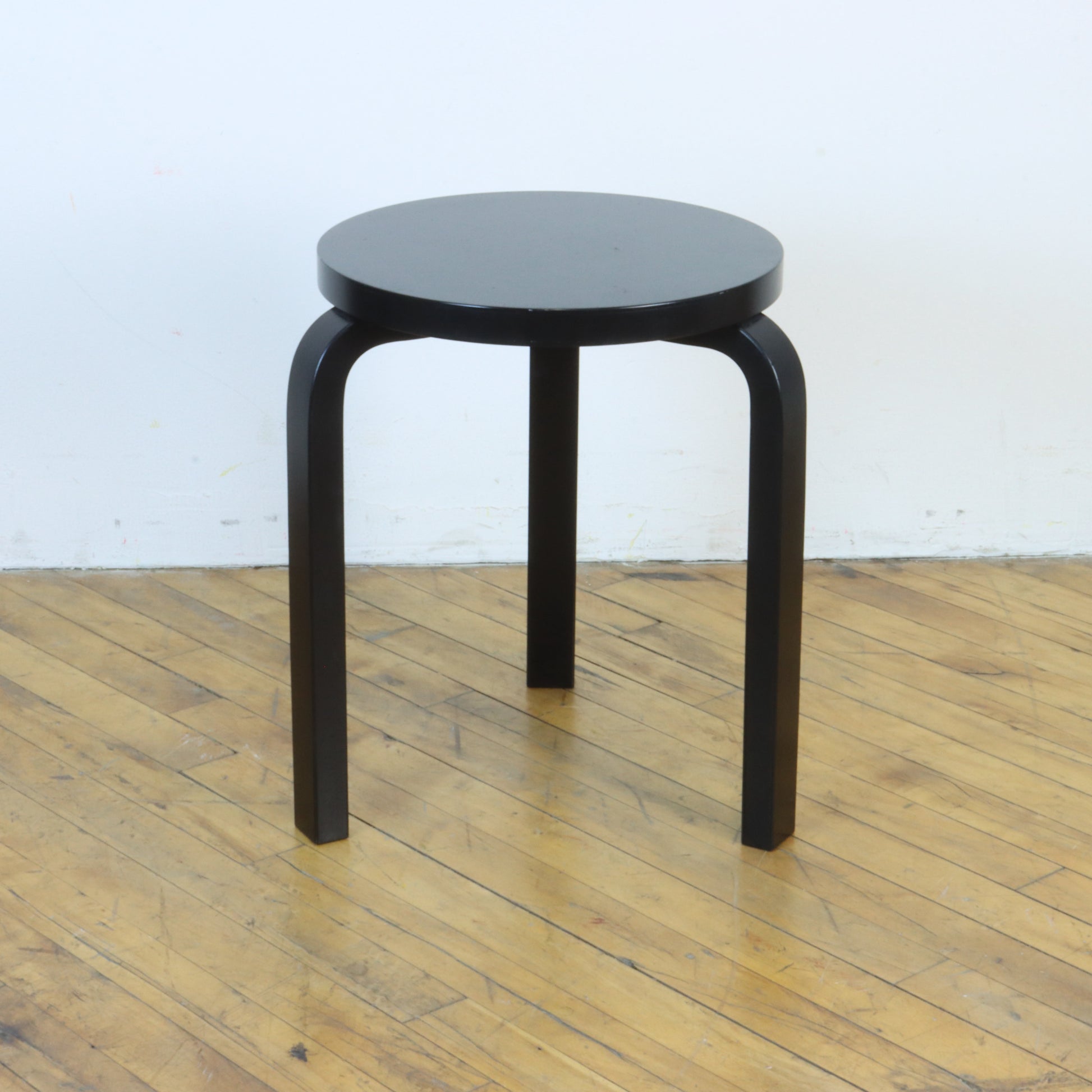 A lasting minimal design by Alvar Aalto, this stool was produced in 2018 by Artek. Black lacquer finish. Serves as seating or a side table. Minor wear to the surface. Please contact for appointments, shipping and local delivery arrangements prior to purchase. All sales final.