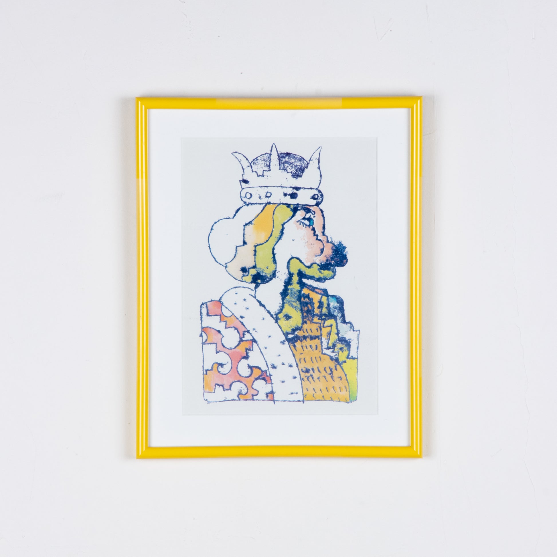 Early 1970s print by Seymour Chwast taken from "Audience" magazine. Set in a yellow plastic frame with glass glazing. Chwast, along with Milton Glaser and others created the "Push Pin" illustration style in the 1970s, contrasting the slick advertistng style of the time with a far more playful, expressive style. Nationwide shipping and local delivery available. Please contact with questions prior to purchase. All sales final.