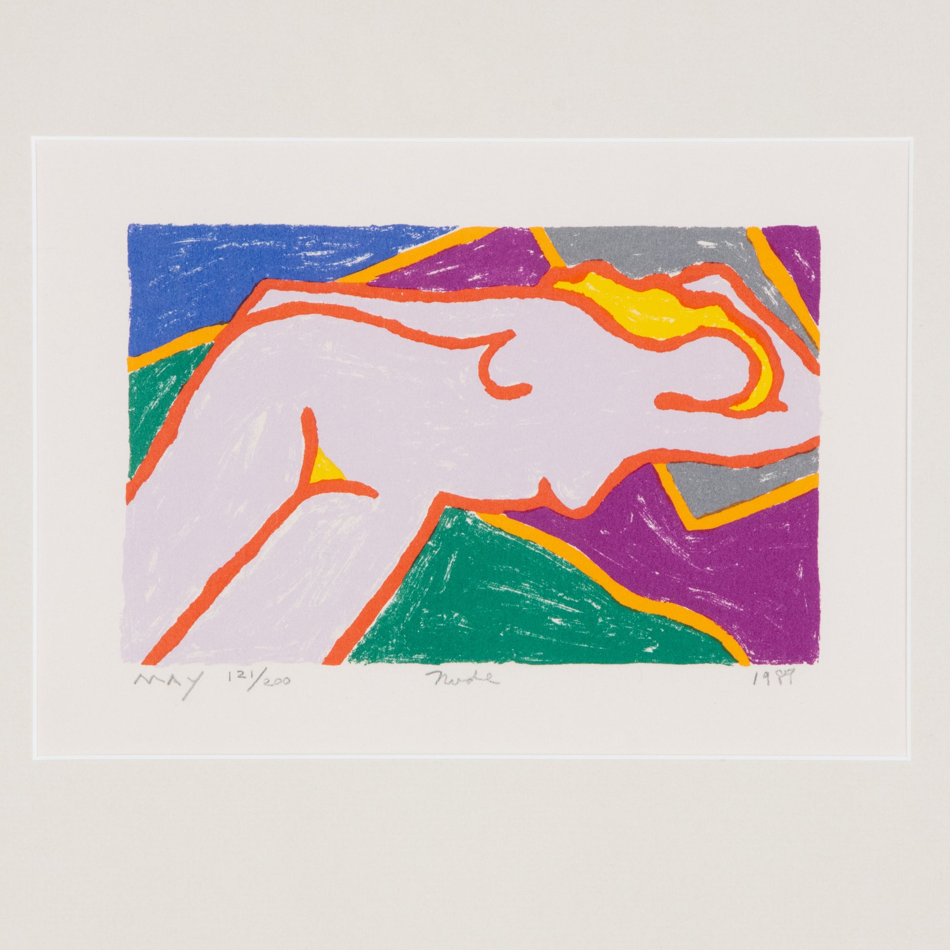 Lovely 1989 screen print by Oakland artist Dan May. 121 of 200. Unlike some of his other prints, this one has a looser, line and a paint like quality. Set in an elegant aluminum frame with glass glazing and an off white mat. Print is in excellent condition. Nationwide shipping and local delivery available. Please contact with questions prior to purchase. All sales final.