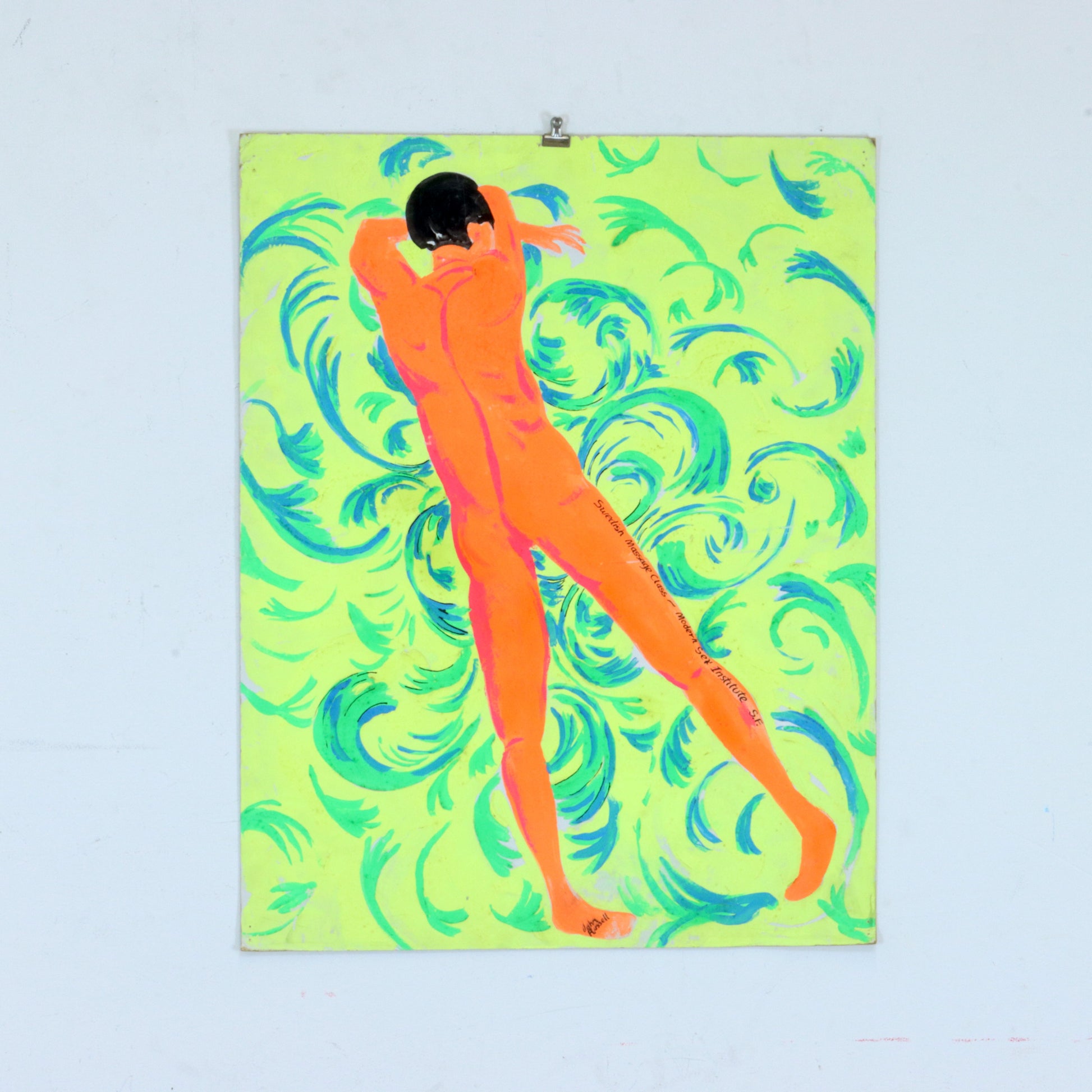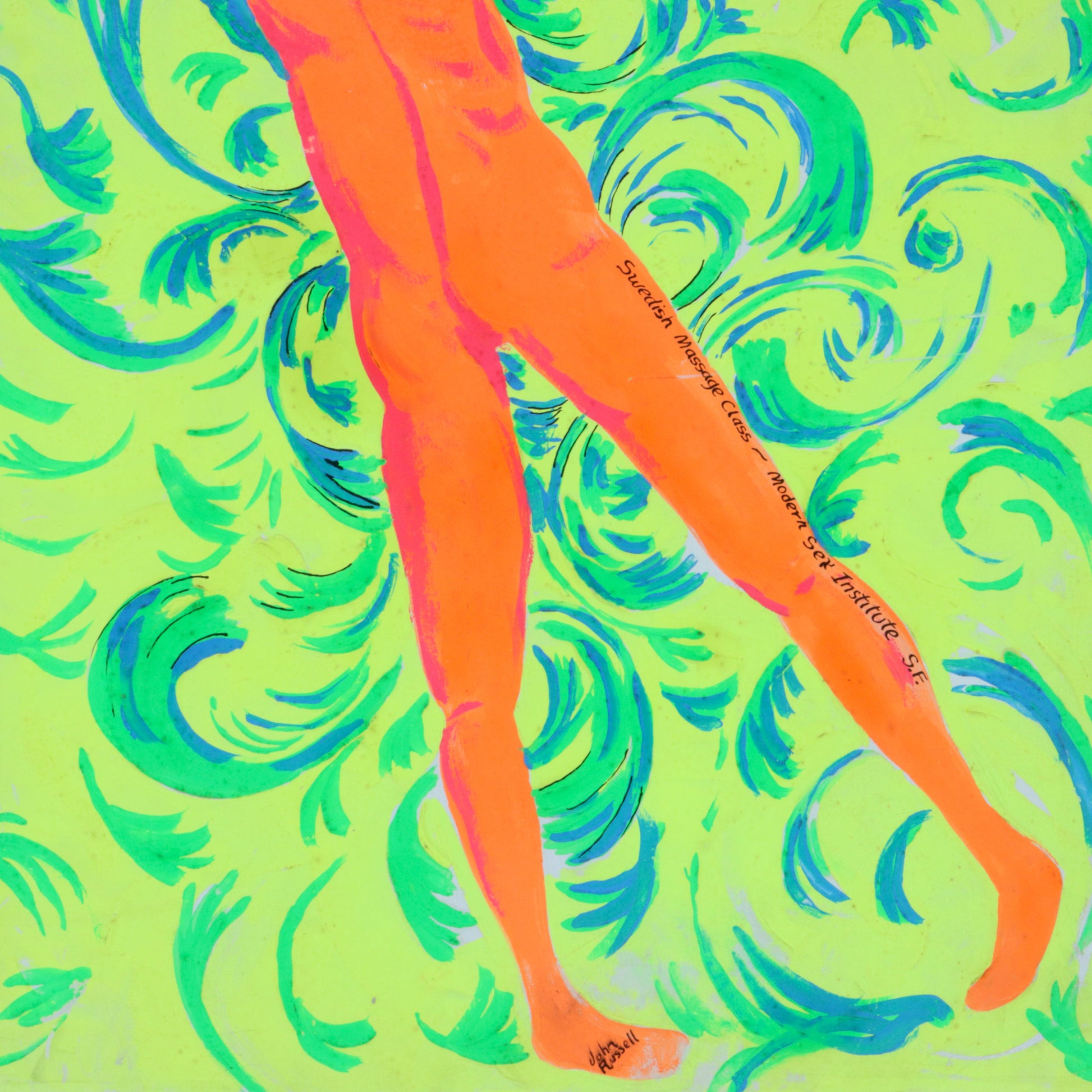 Free shipping. Nude figure painting by John Russell for the Modern Sex Institute in San Francisco, acrylic on hardboard. Perhaps this was the original draft for a poster to promote the Swedish Massage class. See photos for condition details.