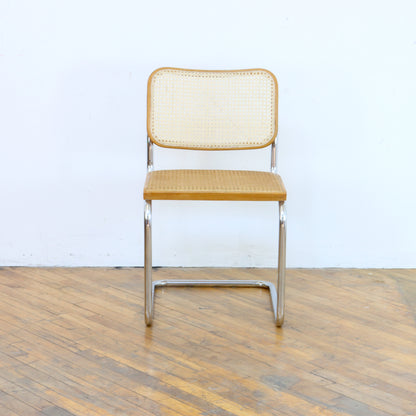 A high quality production of a design classic, the "Cesca" chair by Marcel Breuer manufactured by Knoll in 1974. The backs have been re-caned; new cane will darken with time and is more durable if left un-colored. That said, seat backs can be tinted darker at additional cost. Overall good vintage condition, see photos for details. Please contact for shipping and local delivery arrangements prior to purchase. All sales final.